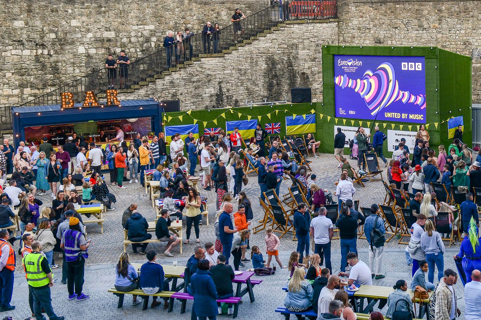 Supporting screens for secondary stages and audience areas